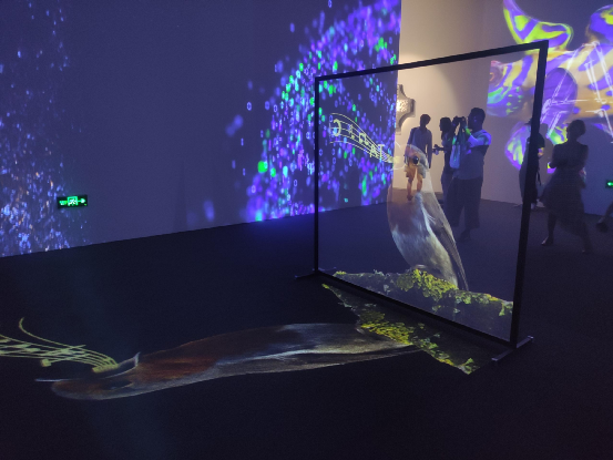这场被称为“新场景媒体尝试”的展览,力图通过光影的创新呈现,实现一种新的沟通方式,不仅是形式上的创新,更是展示维度上的重构。在1500平米的空间里,置身在裸眼3D塑造的虚拟现实中,观众行走其间,用脚去丈量生命的维度。