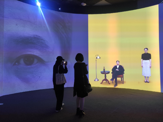 此次沉浸展的“剧情”由七个空间章节构成,通过四个主角色娓娓道来:老人代表的是“癌症、器官衰竭、老年痴呆”,女人代表的是“老人的亡妻,存活在老人的脑中”,男青年代表的是“科学家”,小女孩代表的是“老人的意识/记忆程序”。这其中,基因编辑、脑机接口等前沿科技都被揉进“剧情”。在光影变幻的空间里,观众第一次在观展的过程中,有了一定的决定权,重新组装一遍新的内容,从而带来新的思考。
